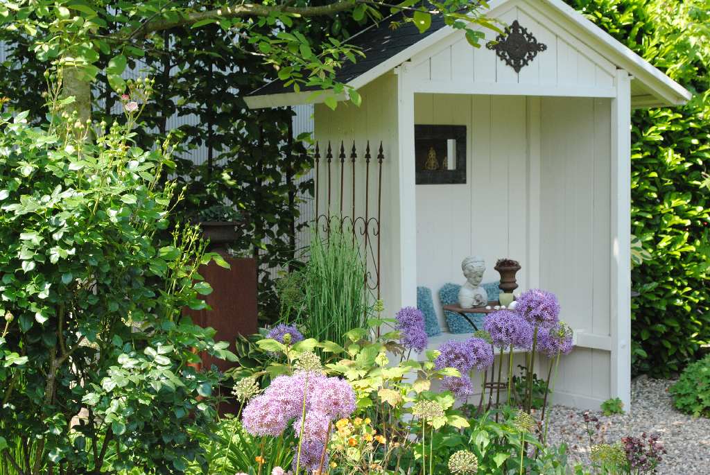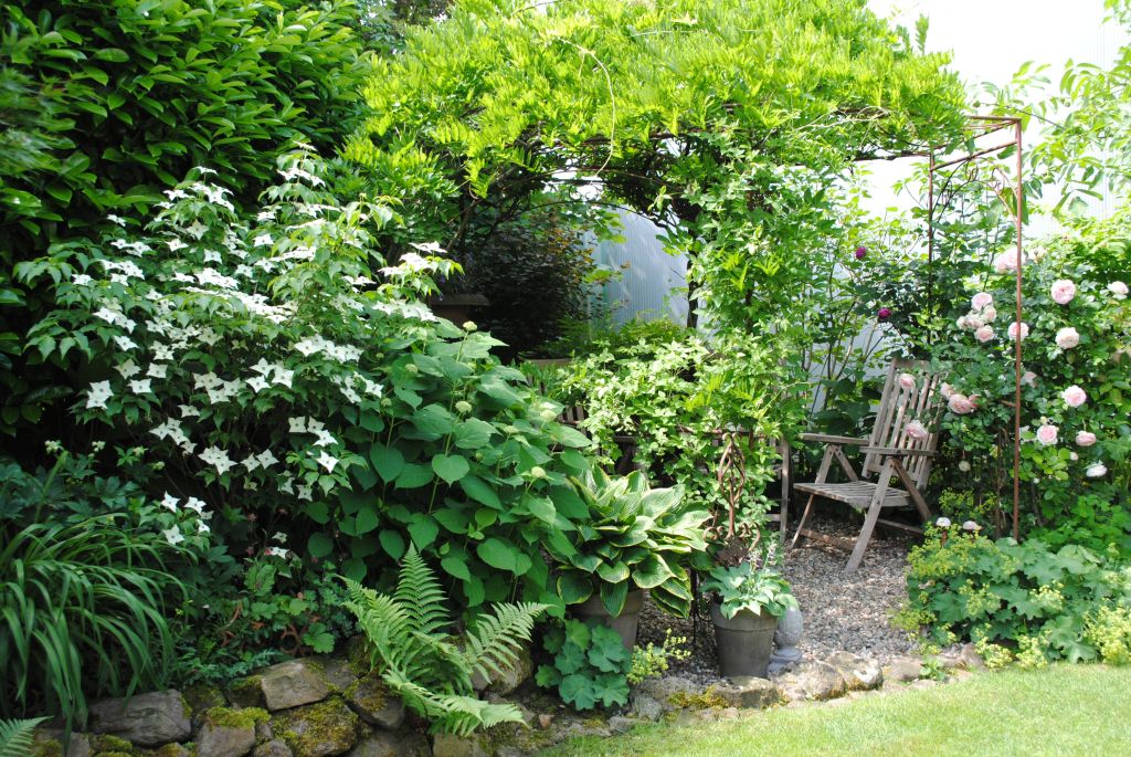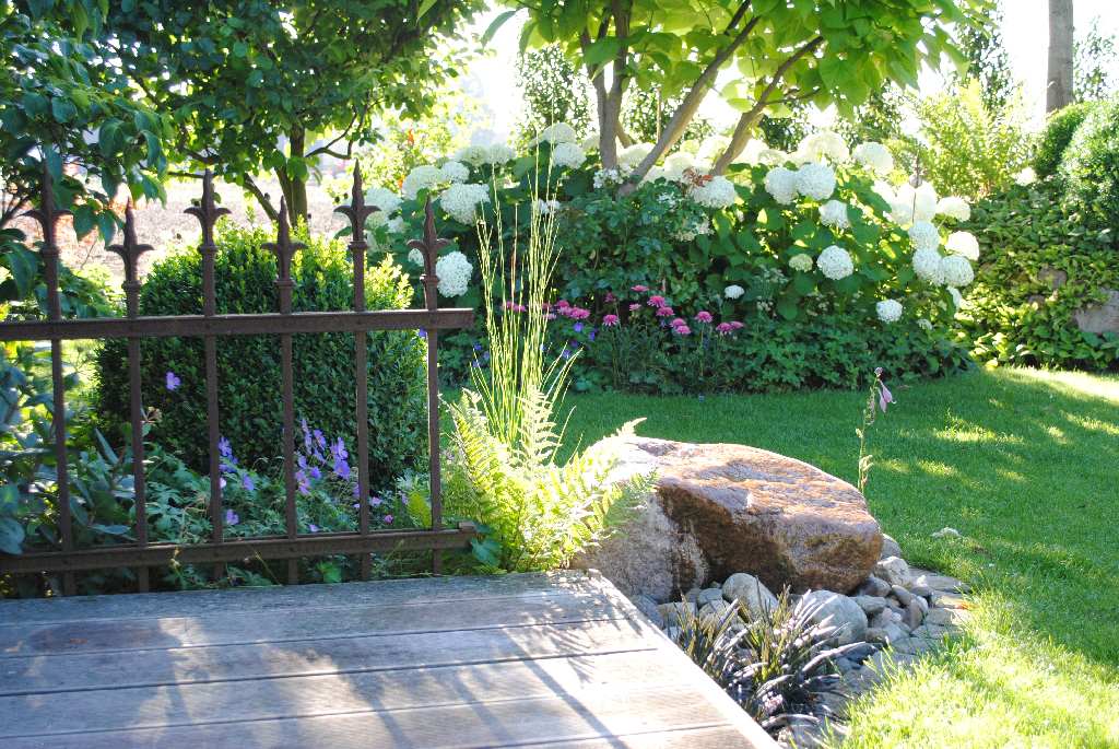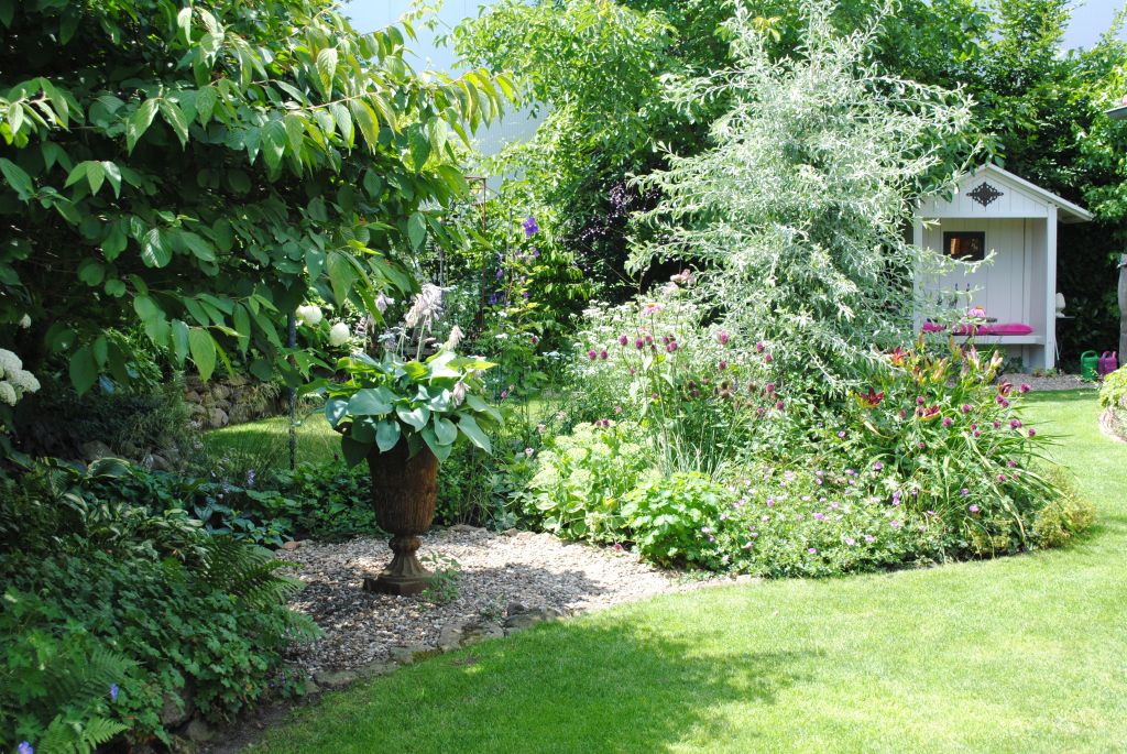 Von verschiedenen Sitzplätzen aus eröffnen sich immer neue Blickwinkel auf bunte Staudenbeete,